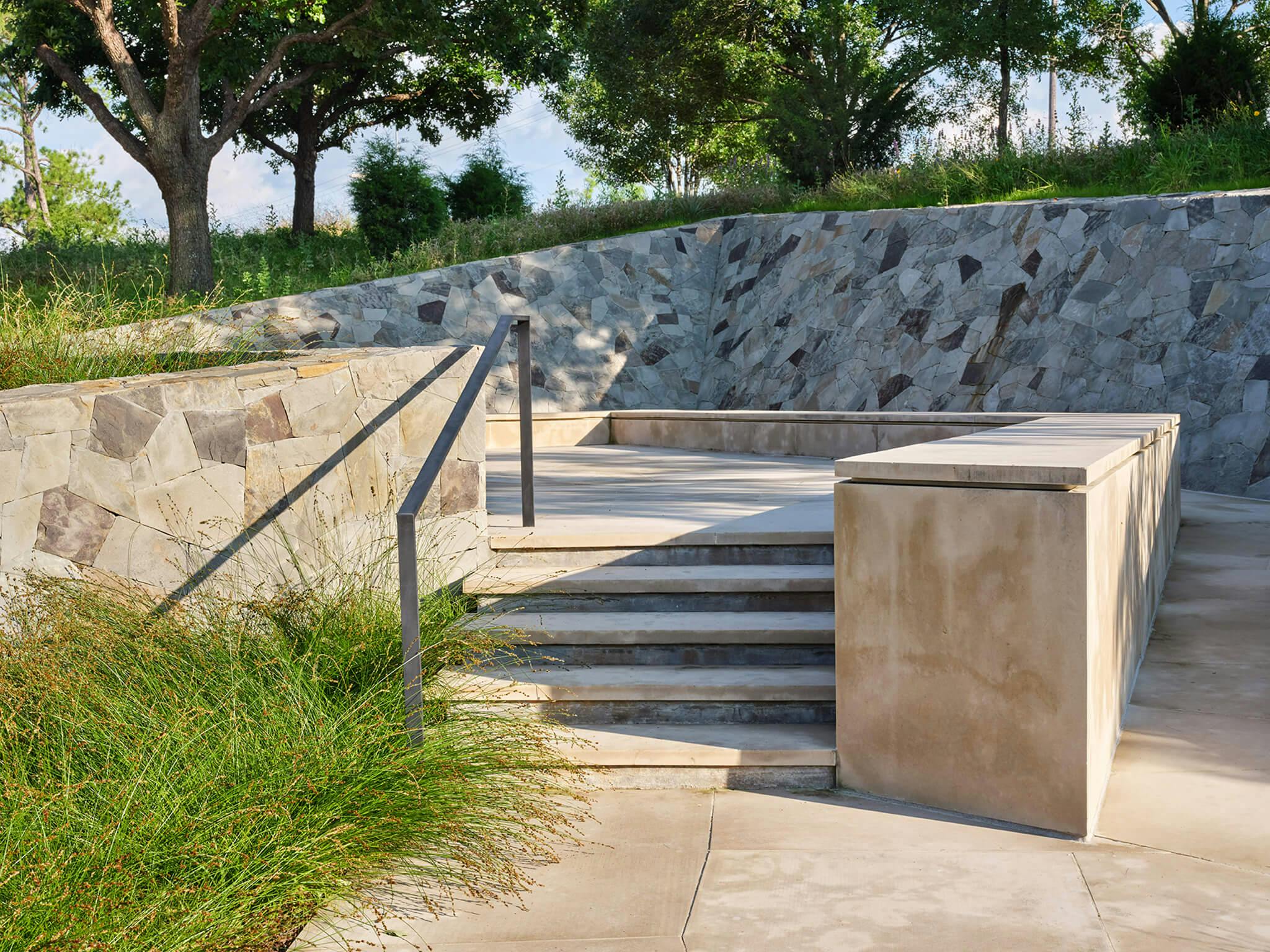Cistercian Abbey and Preparatory School are located near Las Colinas (the hills) in Irving, Texas. An ongoing master planning effort aims to create a more environmentally friendly and holistic campus. Native and adaptive landscaping offers lower water needs and maintenance requirements and regional stone and aggregates increase the permeability of the site along walkways and in courtyards. Open outdoor spaces provide extensions from and connections between adjacent indoor spaces at the abbey’s Chapel and Retreat House and the school's Founders’ Hall and Science Building. These provide spaces that encourage impromptu and planned gatherings, ceremonies and moments for contemplation. Site-built furnishings, art installations, and thoughtful landscape zones help to establish these spaces as new hubs of activity on campus.