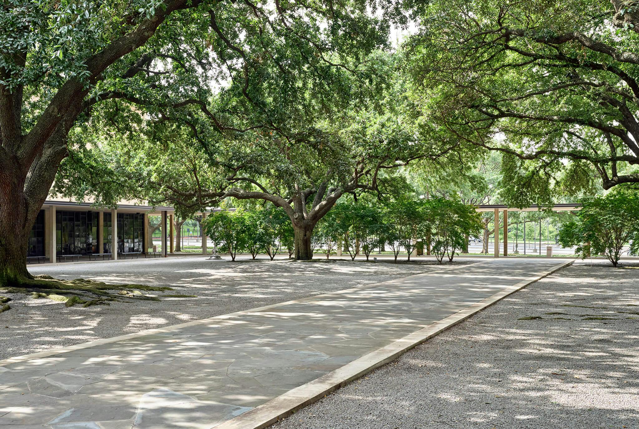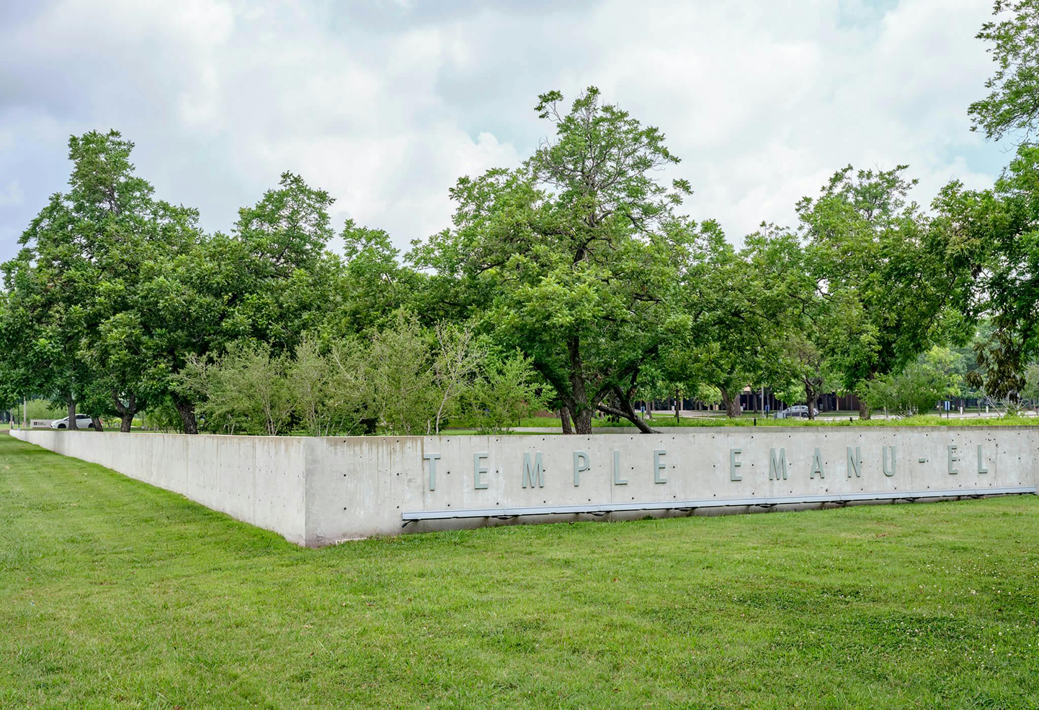 Temple Emanu-El, first established in 1875, was reinforced as the heart of the Jewish community of Dallas with its current campus in 1957. The original campus was designed by famed modernist architects Howard Meyer and Max Sandfield and has been expanded in three phases since its original inception. The most recent expansion, first conceived in a 2008 campus master plan, offered modern, more sustainable updates for the 19-acre site. The updates include new and renovated buildings, as well as re-designed and adjusted site elements, intended to foster connectivity and social interaction among the members. A focus on restoration and reclamation within the landscape spaces prevails throughout. The original canopy of pecans, live oaks, and red oaks, laid out in a strict grid that extended from the architecture, was supplemented with other native and adaptive trees, including Texas persimmon, yaupon holly, saucer magnolia, and ginkgos. The lengthy project was finally realized in 2016.